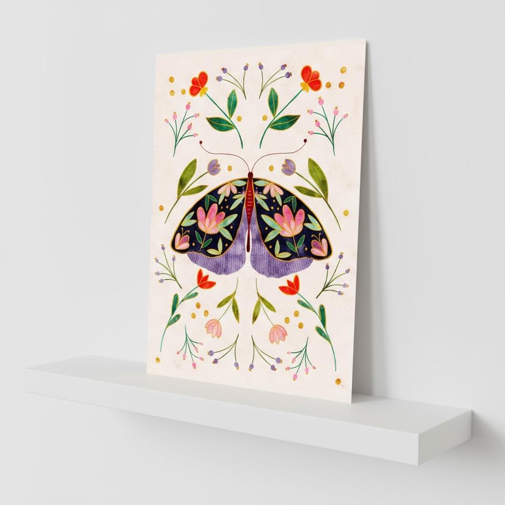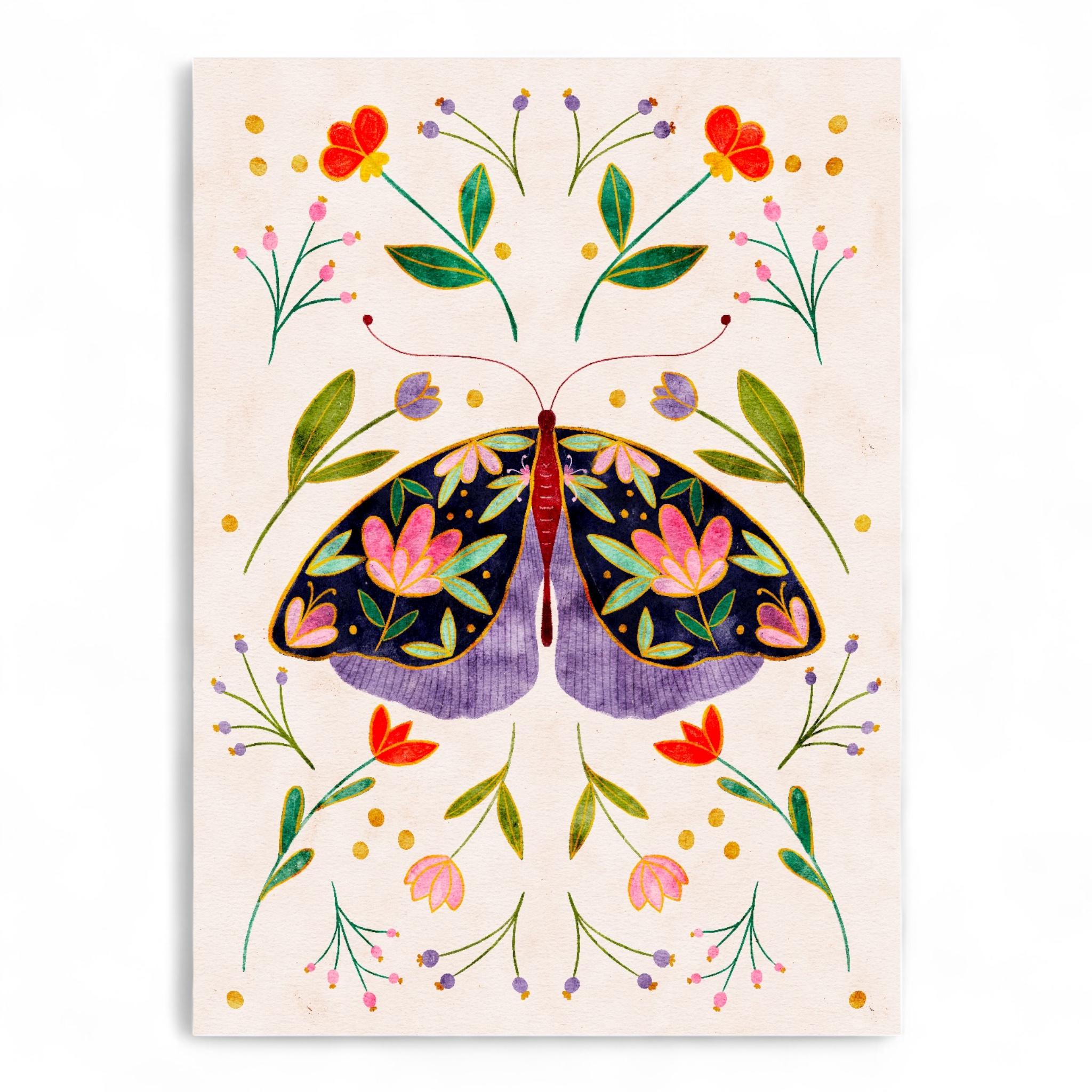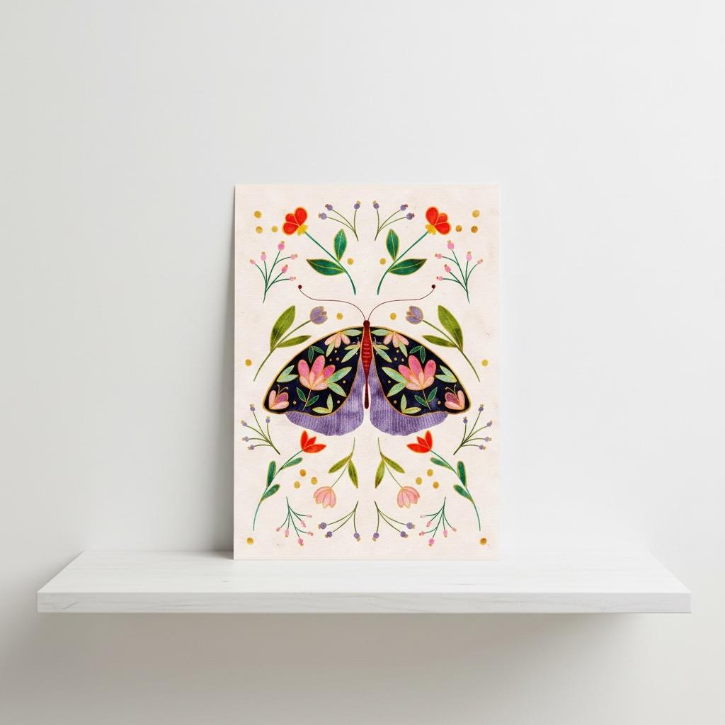 Gorgeous illustration of a navy floral moth on a cream background. These A5 prints are thick enough to lean on a shelf or to use as wall decor without a frame. They look sweet on their own or grouped together as a collage.