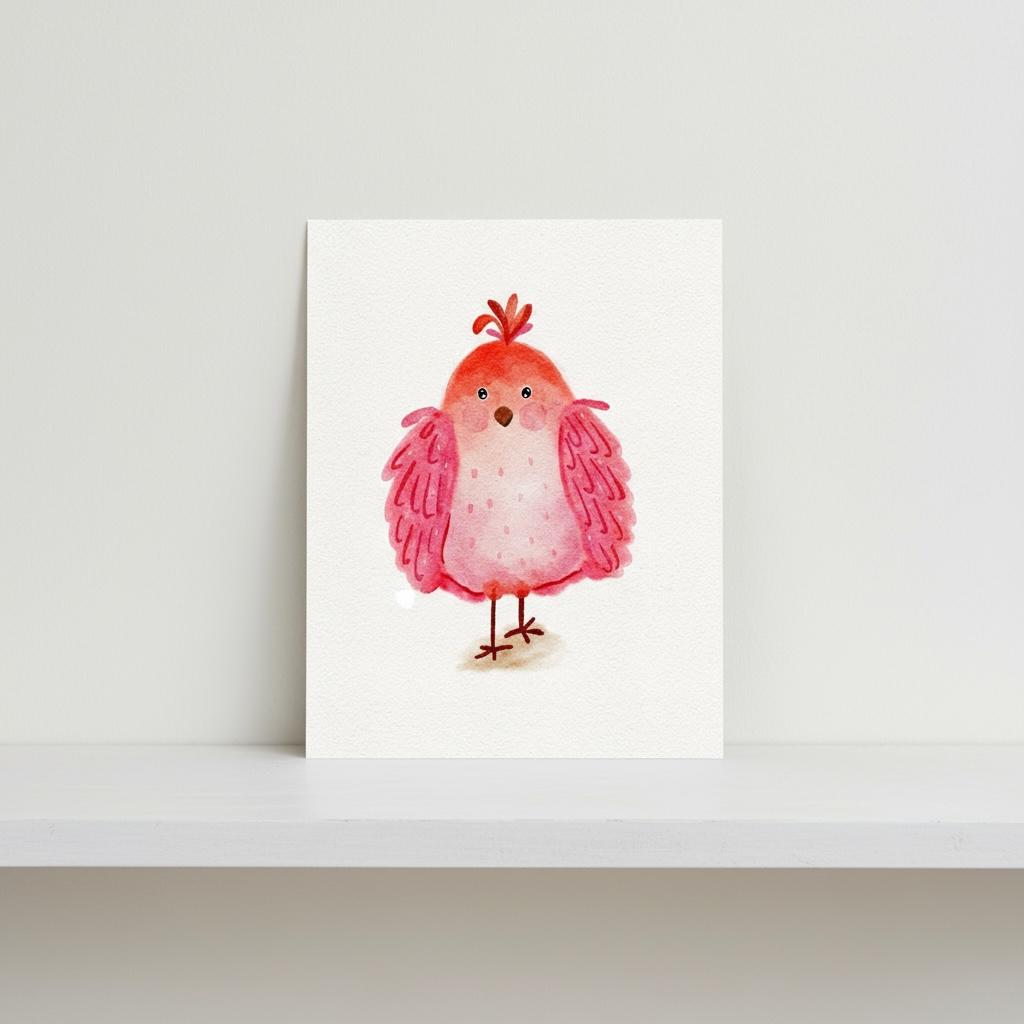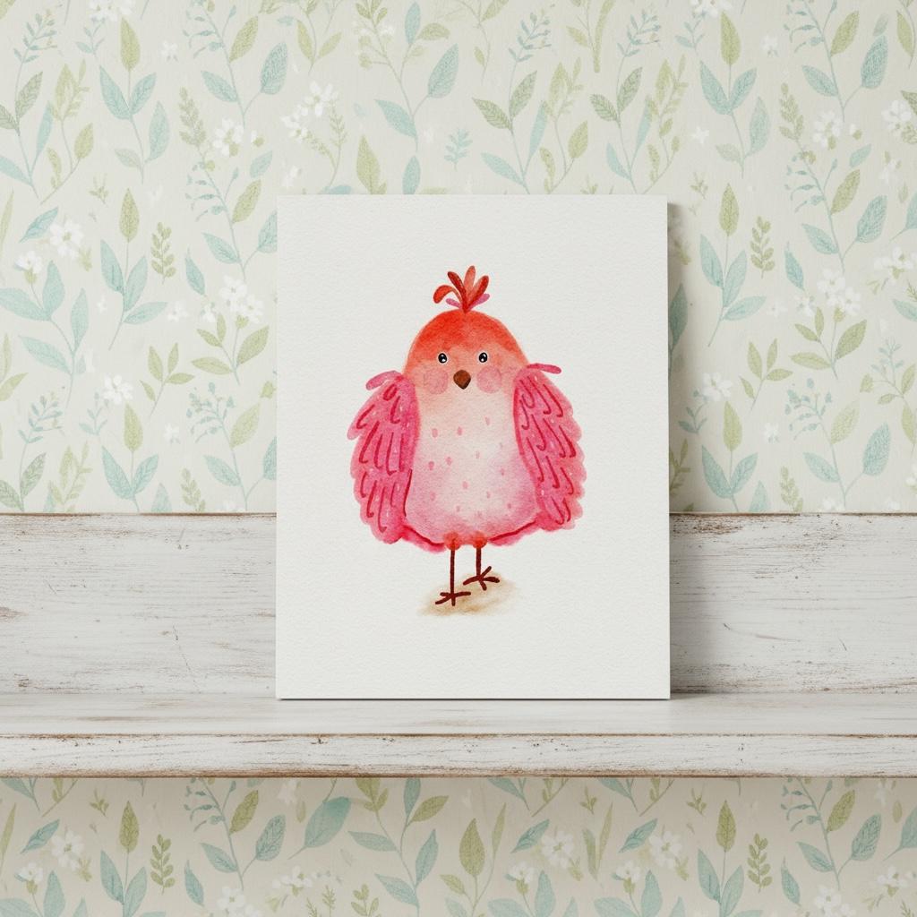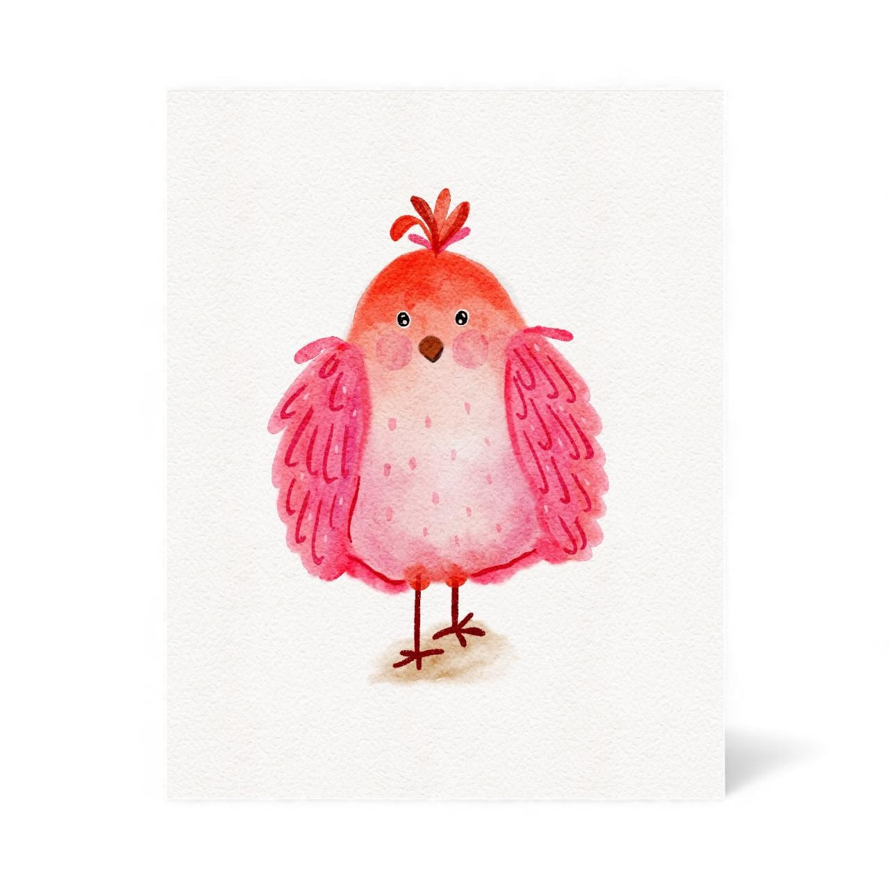 A cute quirky pink bird illustration with so much personality! These A5 prints are thick enough to lean on a shelf or to use as wall decor without a frame. They look sweet on their own or grouped together as a collage.