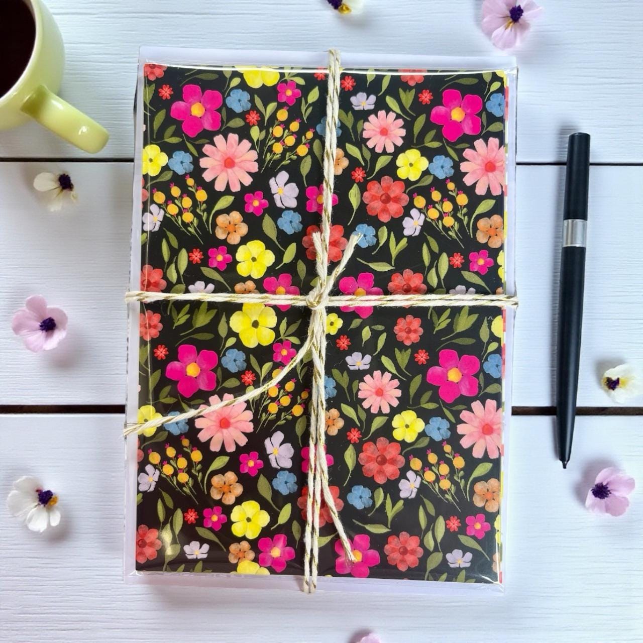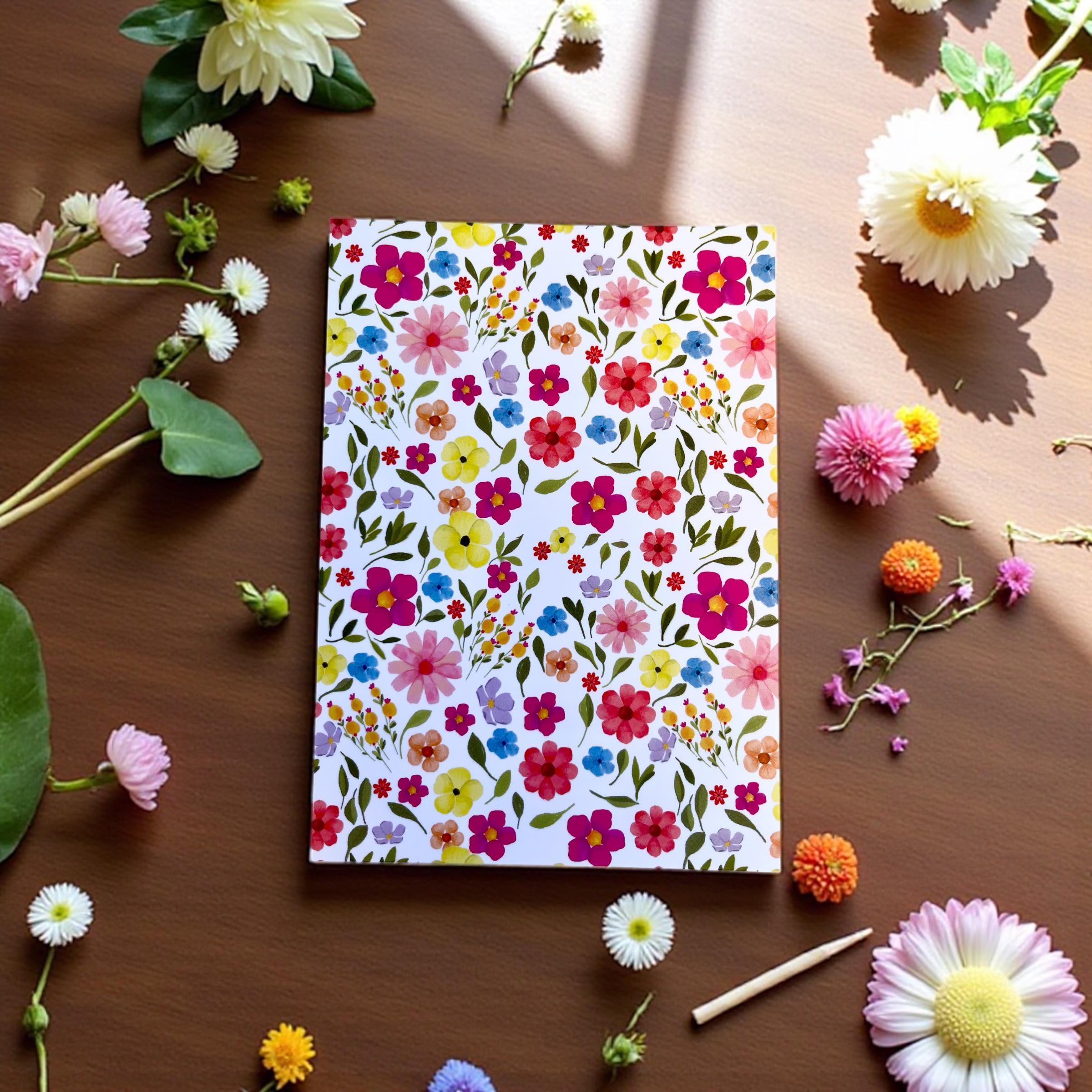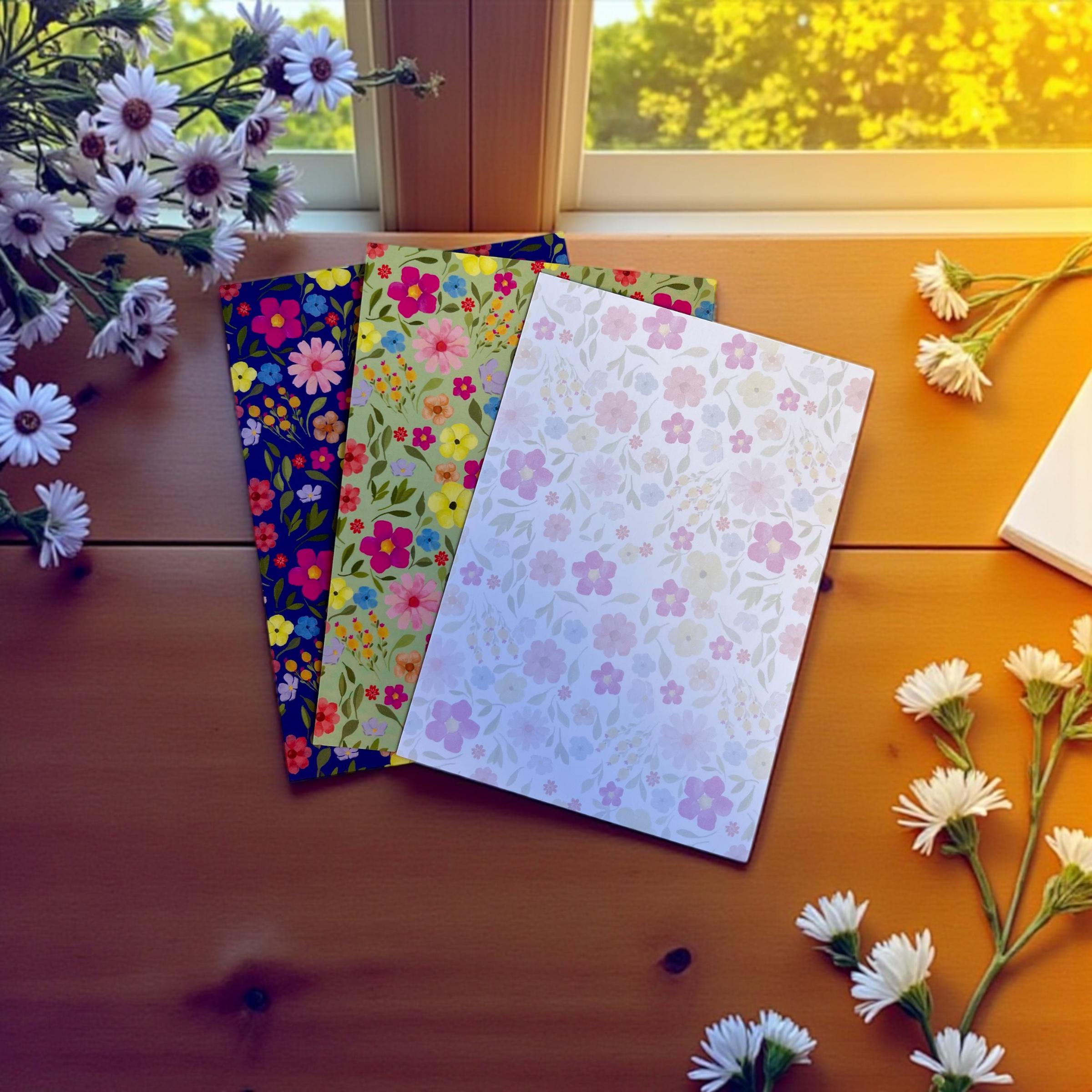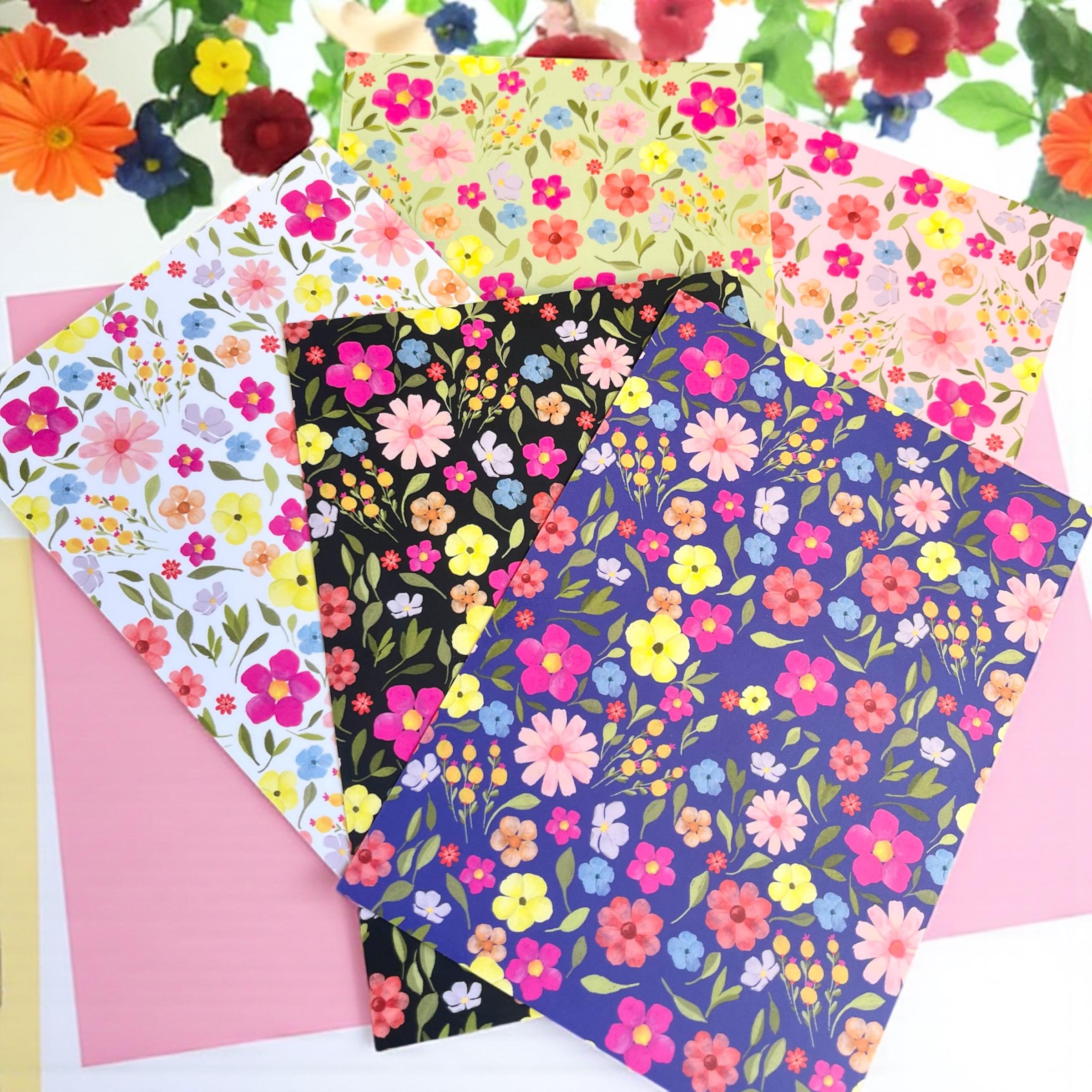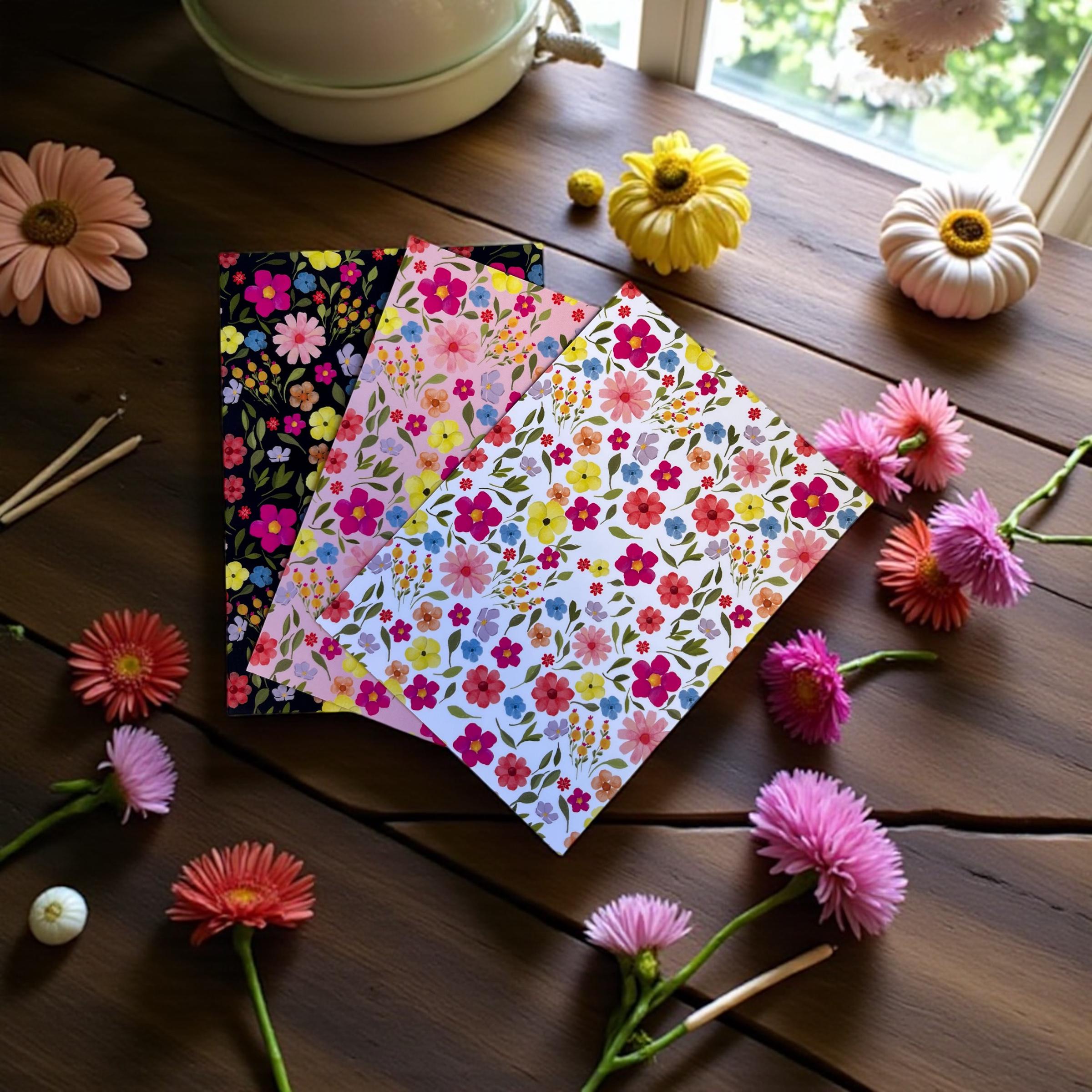 Each card is matte in texture and feature my illustrated floral pattern. The back is the same design, muted, and is uncoated so they can be written on easily.