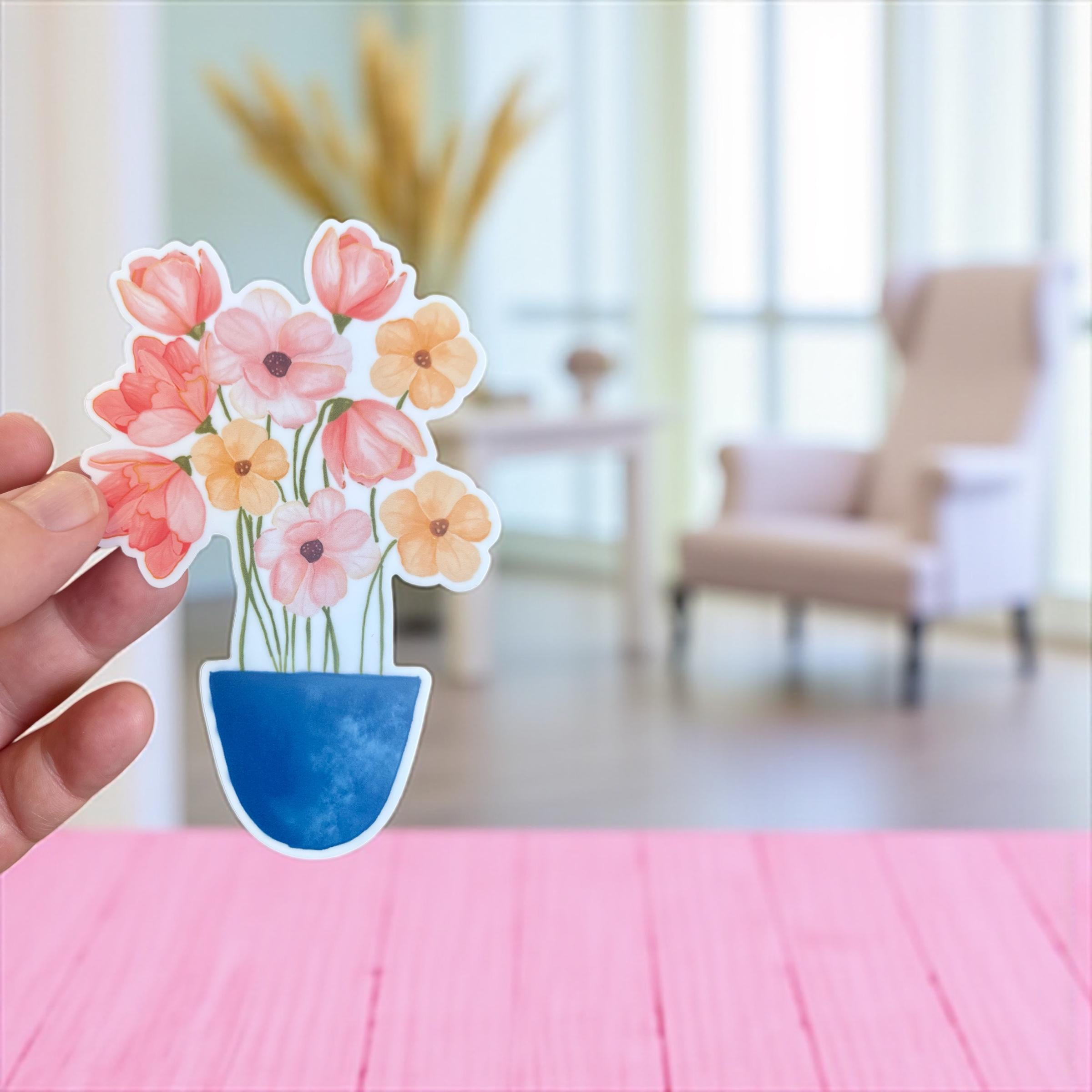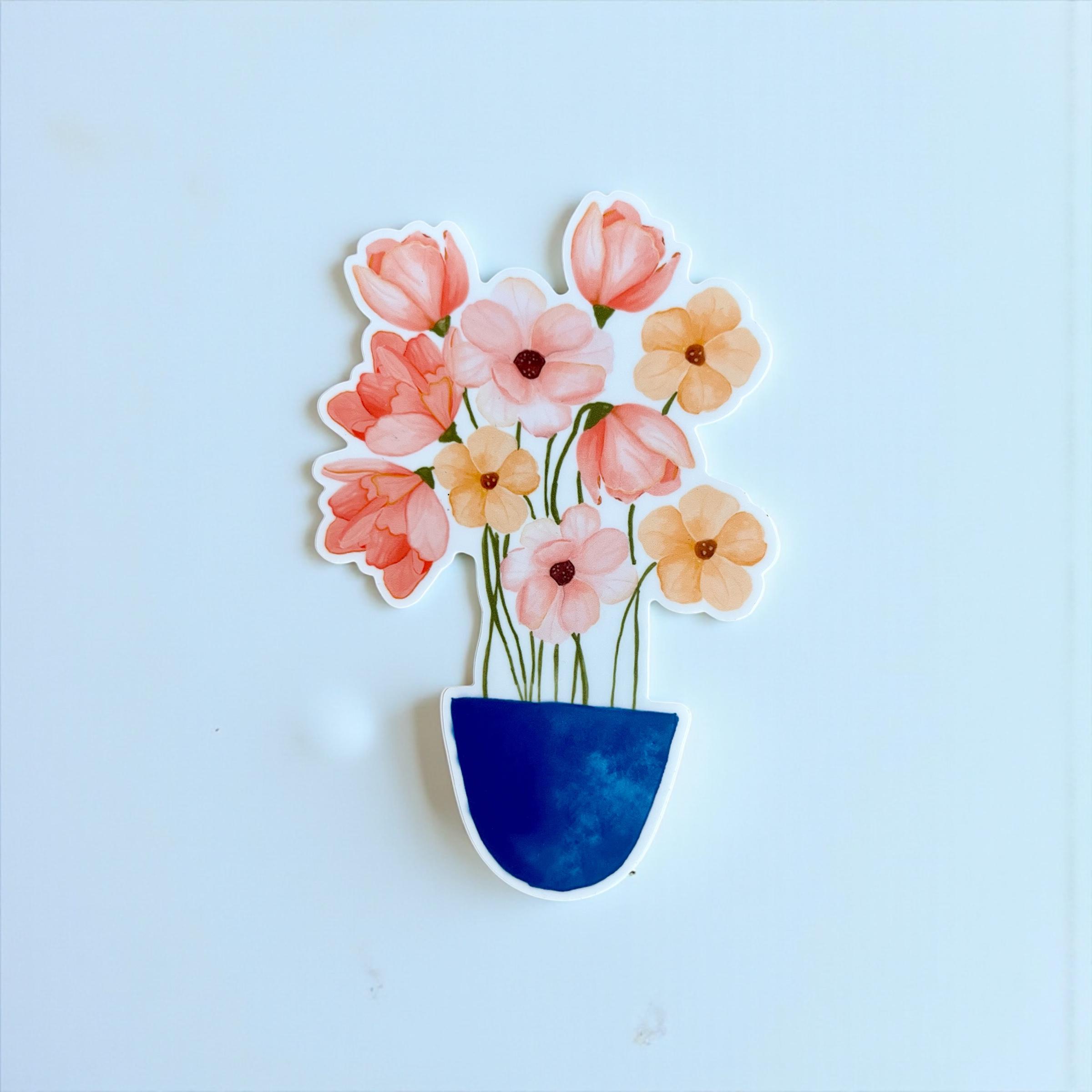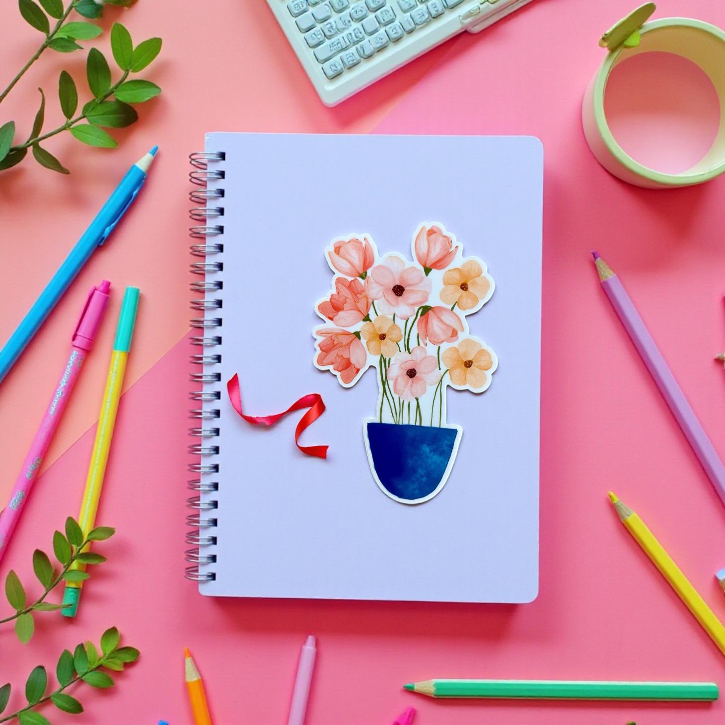 Bring a touch of charm and color to your belongings with this hand-illustrated whimsical flower pot vinyl sticker! Featuring an original illustration full of personality, this sticker is perfect for adding a cheerful accent to laptops, water bottles, notebooks, phone cases, planners, scrapbooks, and more. Its playful design makes it a versatile decorative piece for personal use or as a thoughtful gift.