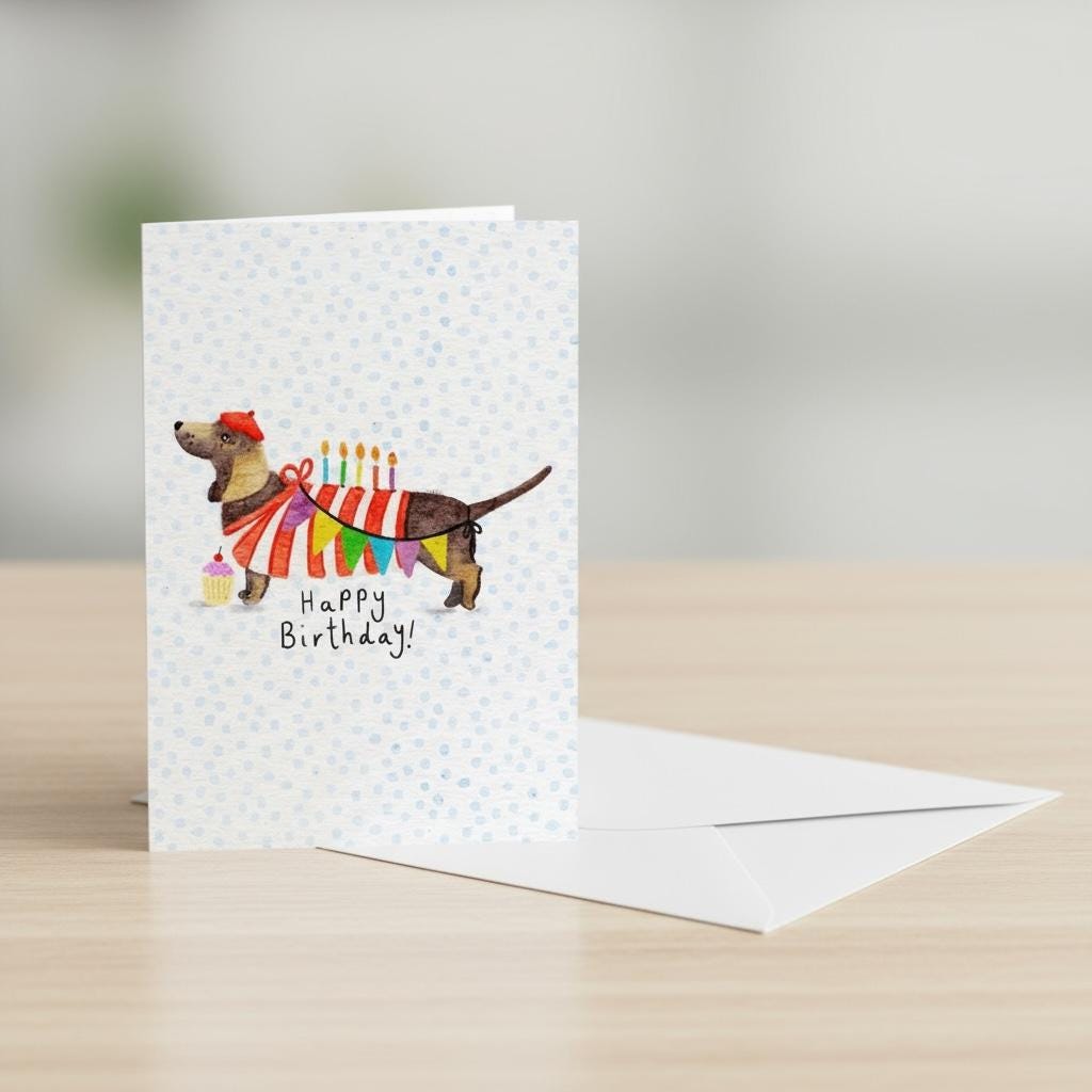 Celebrate a birthday with a smile! This A6 greeting card features a playful sausage dog illustration, perfect for dog lovers, friends, or anyone who enjoys quirky, cheerful designs. Its bright and fun artwork makes it a memorable and lighthearted way to send birthday wishes.