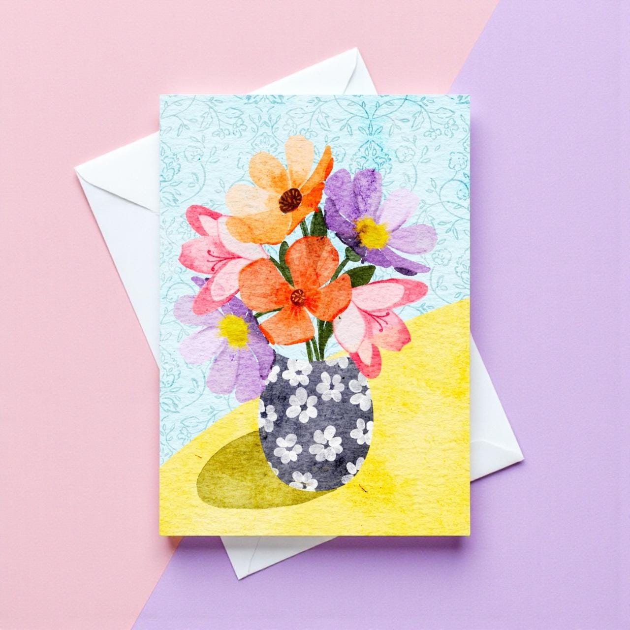Each A6 card comes with a crisp white envelope and is carefully packaged in a protective cello bag—ready for gifting or posting. Perfect for birthdays, thank-yous or anyone who loves bold, joyful florals.
