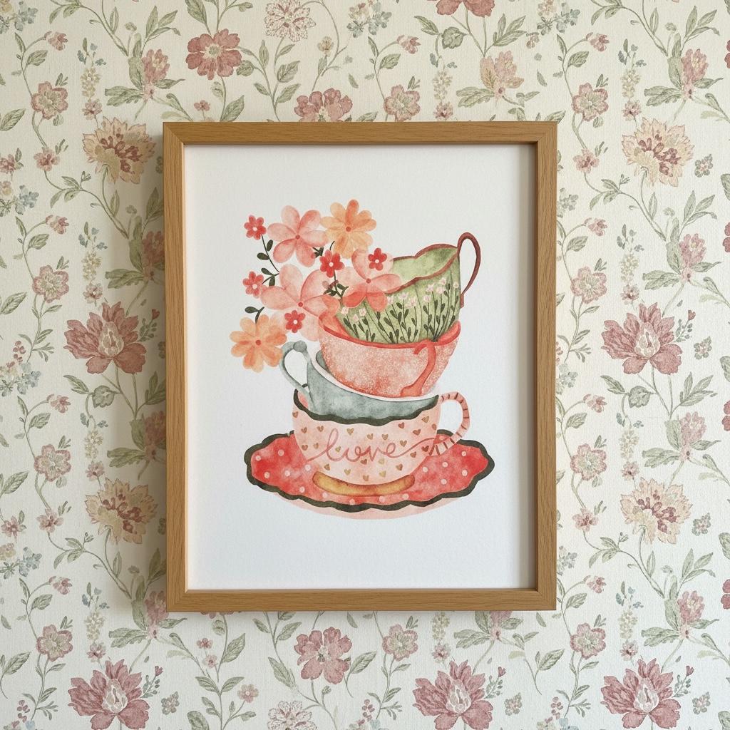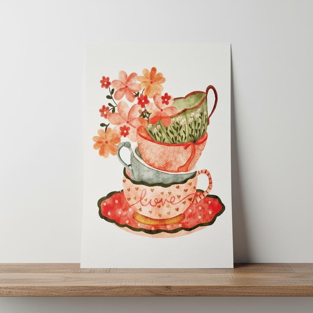 Perfect as a standalone statement or as part of a warm, inviting gallery wall, it’s a lovely choice for tea lovers, collectors, or anyone who enjoys charming, nostalgic art.