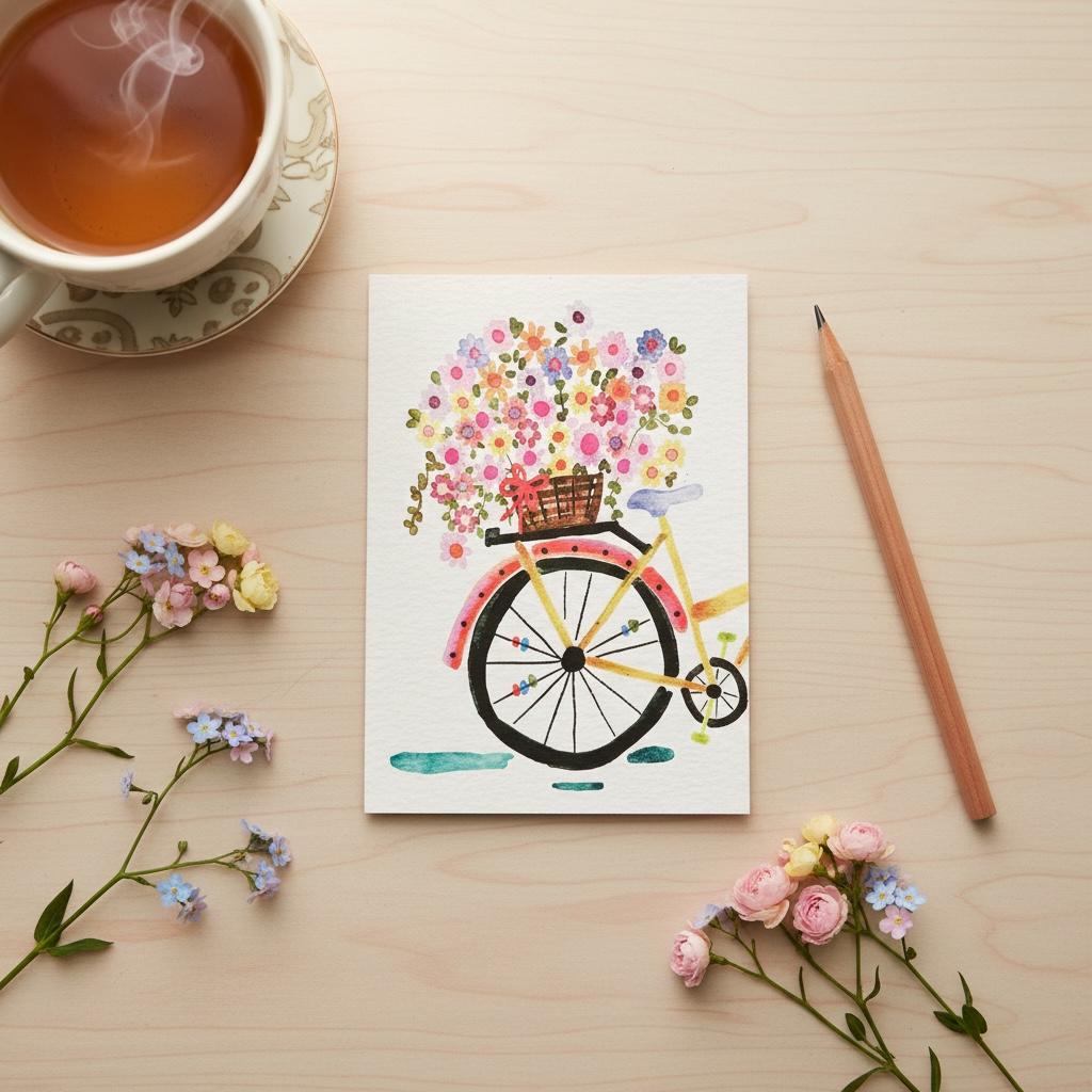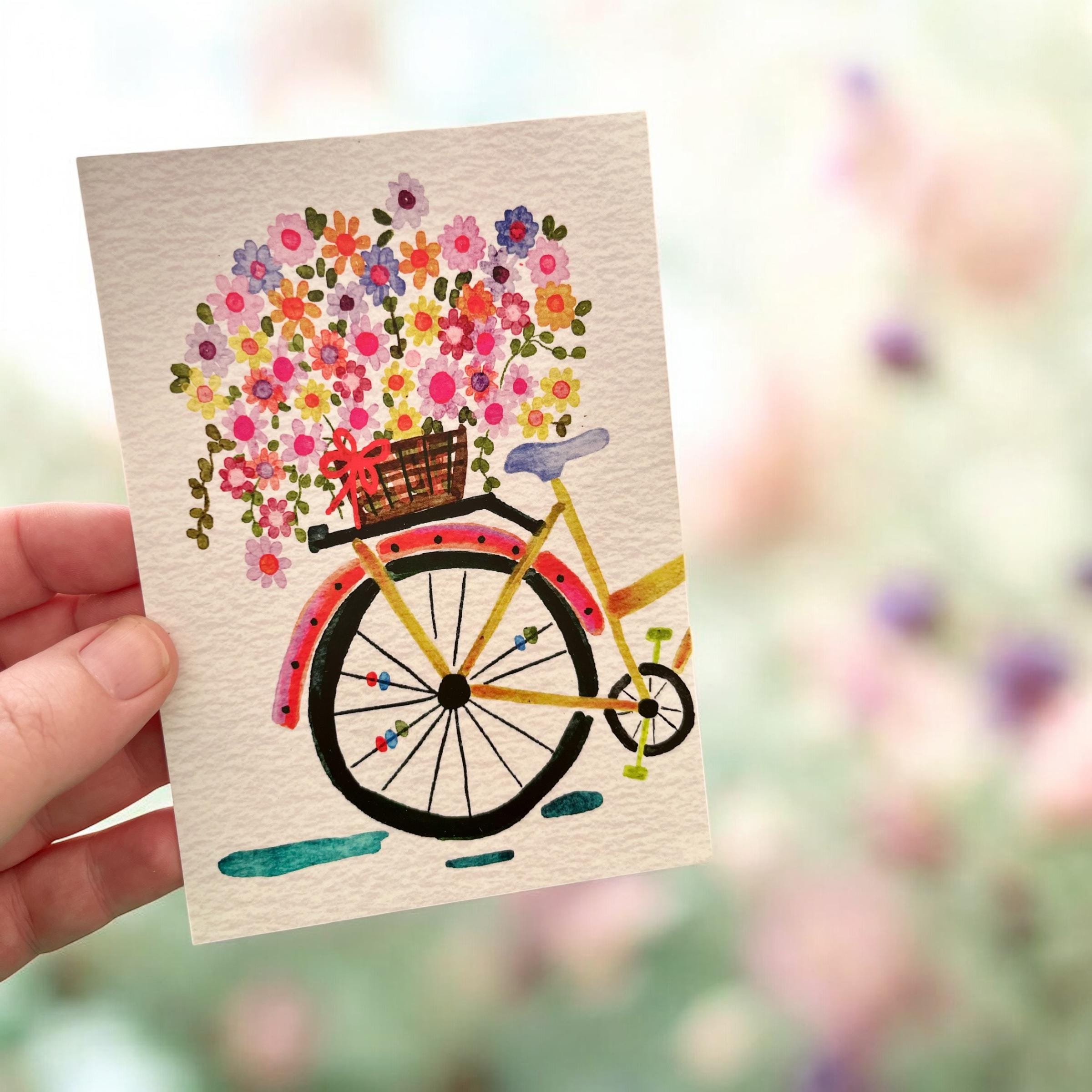 Professionally printed on 350gsm card, these bright and colourful notecards / postcards feature an illustration of a bicycle brimming with flowers. They are a lovely way to jot down some words for a friend, share a recipe or write a to-do list, reminders or notes to the kids or significant other. Handy to have a set on your desk at home or at work.