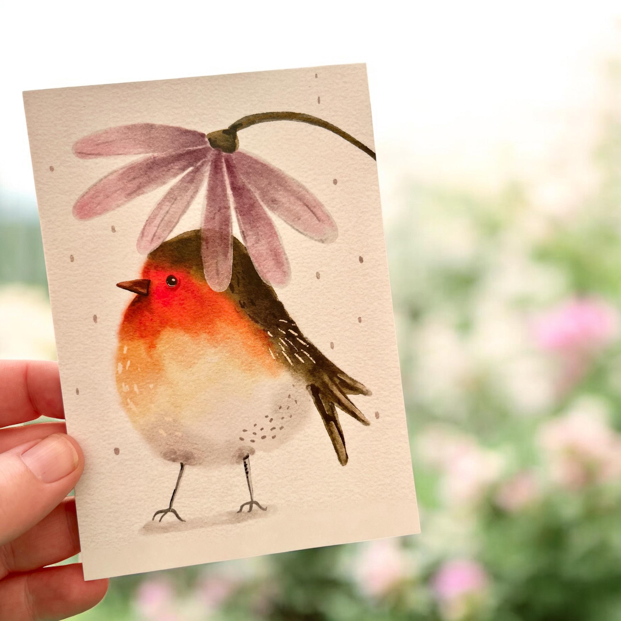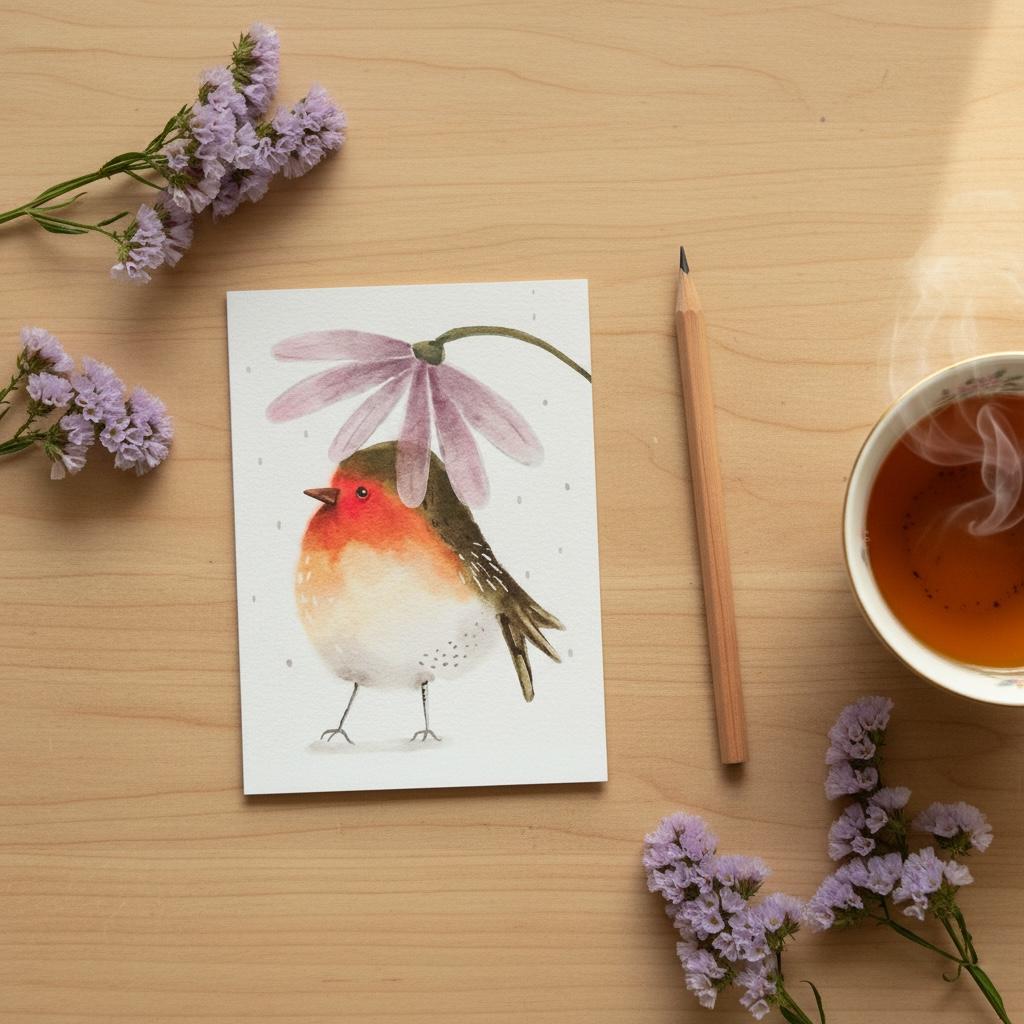 Professionally printed on 350gsm card, these bright and colourful notecards / postcards feature a sweet little bird under a purple daisy umbrella. They are a lovely way to jot down some words for a friend, share a recipe or write a to-do list, reminders or notes to the kids or significant other. Handy to have a set on your desk at home or at work.