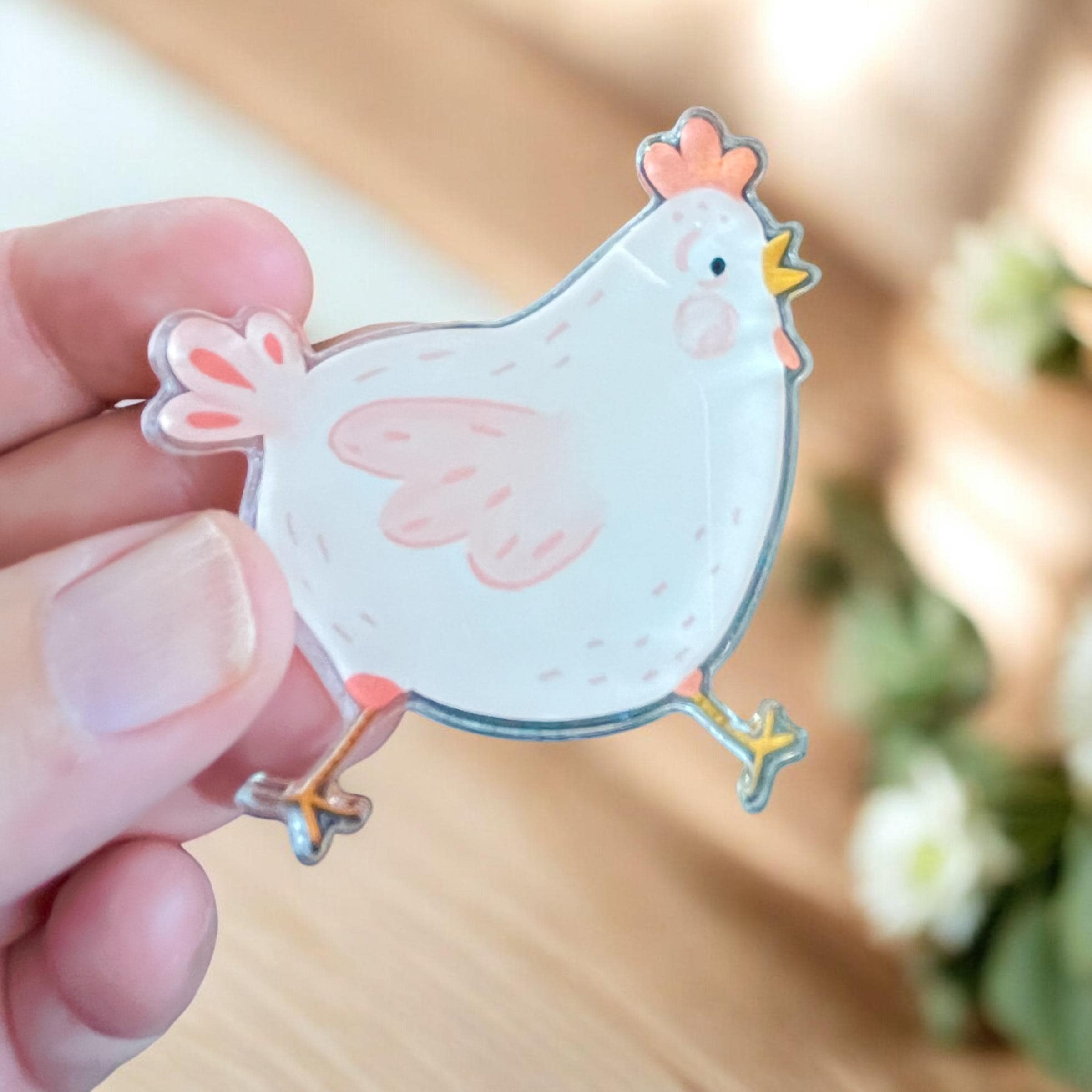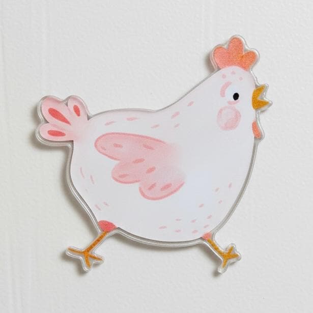 Bring some cuteness to your fridge or whiteboard with this runaway chicken magnet.