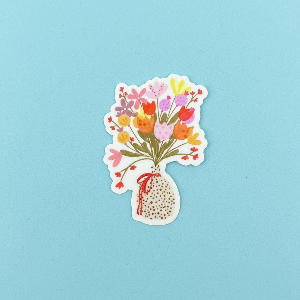 A beautiful, thick, vinyl sticker / decal featuring my Spotty Vase of Flowers illustration.