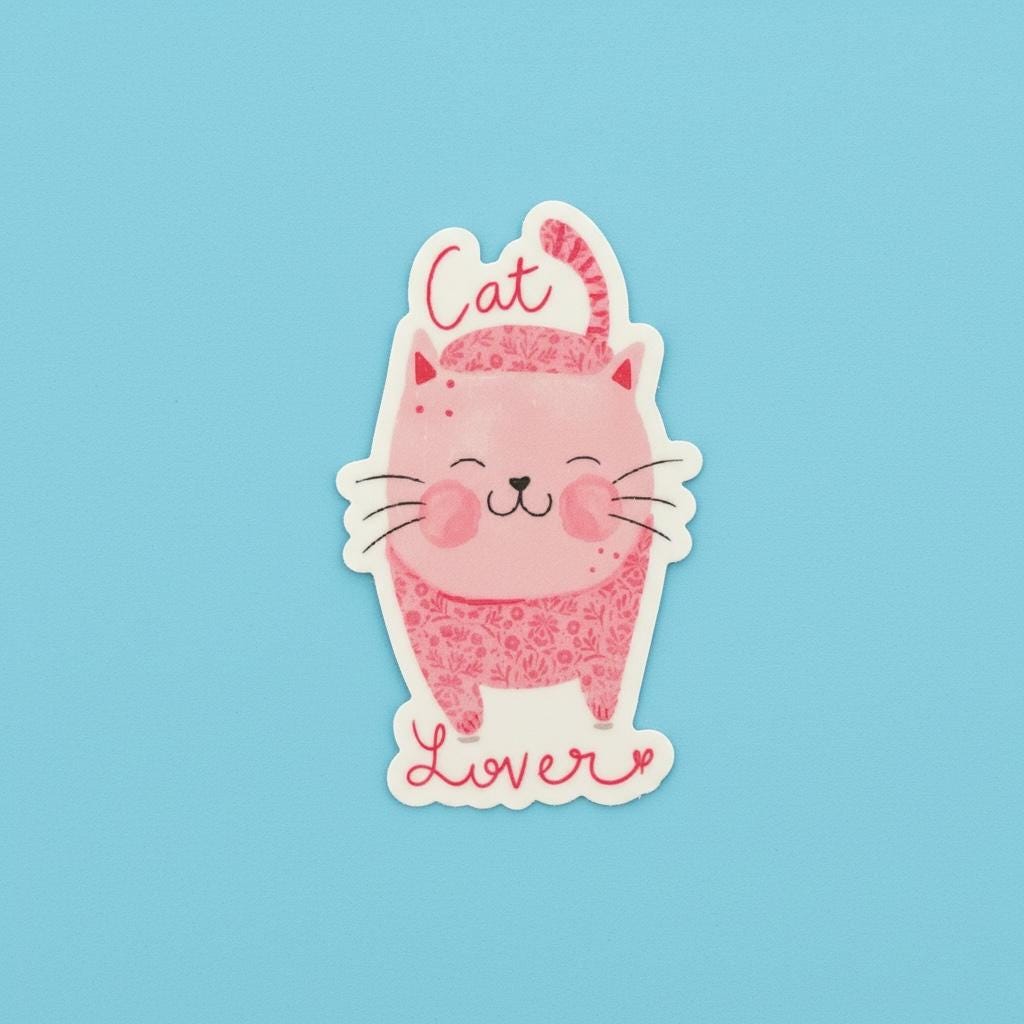 A beautiful, thick, vinyl sticker / decal featuring my Cat Lover illustration.