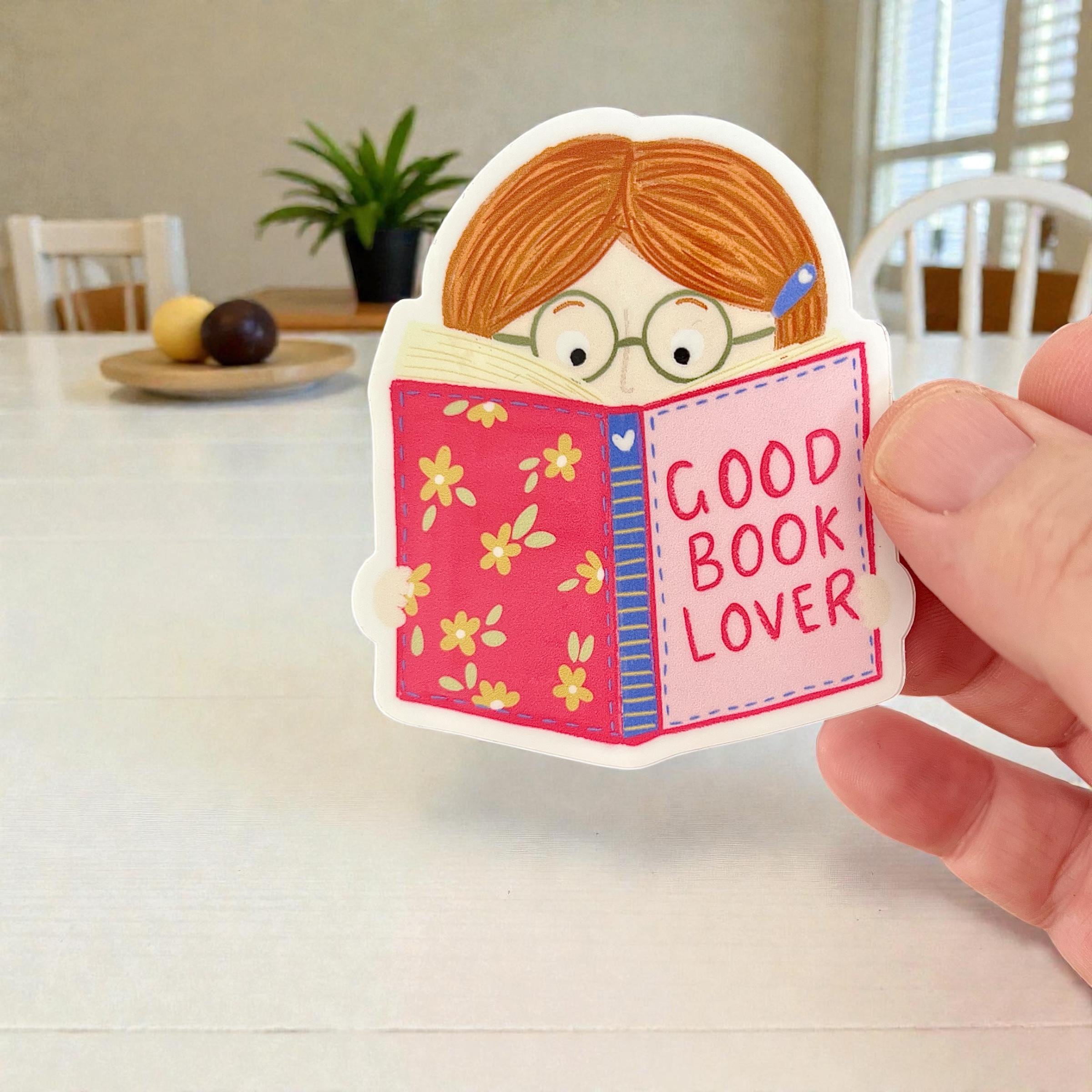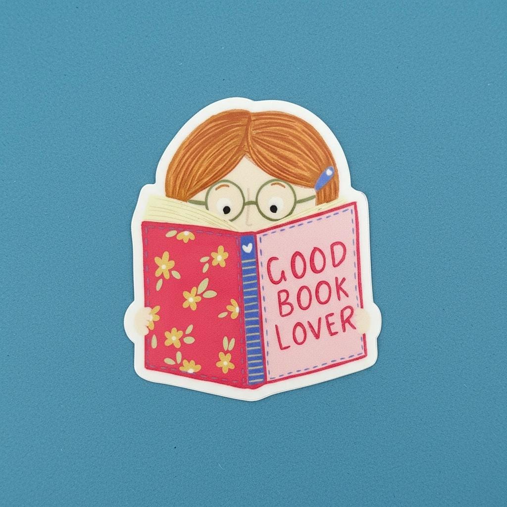 A beautiful, thick, vinyl sticker / decal featuring my Good Book Lover illustration.