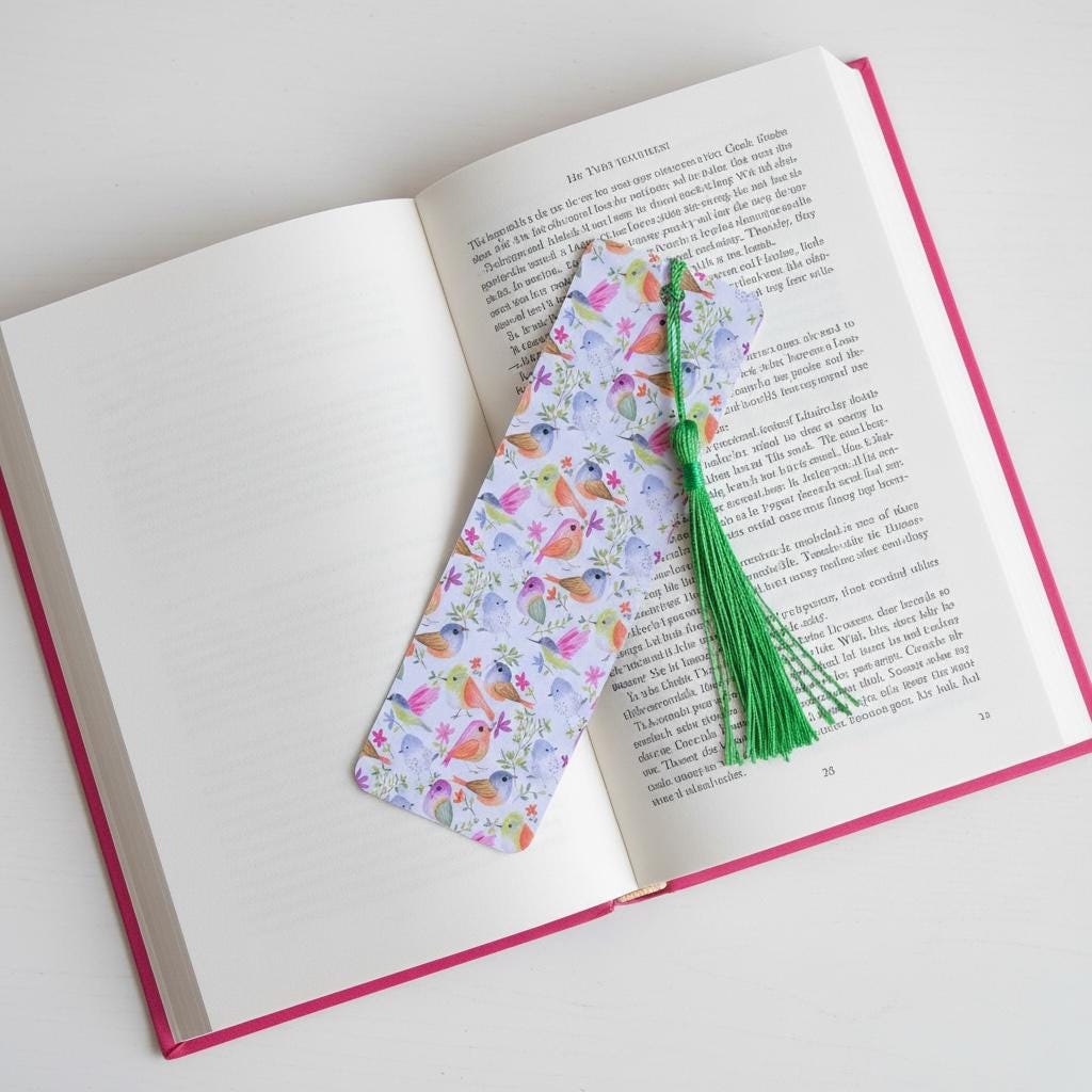 The bookmark features rounded corners for a smooth, finished look and is double sided, with the same illustrated design printed on the back for a polished, high-quality finish. A coordinating tassel is attached at the top, making it easy to find your place and adding a lovely decorative touch.